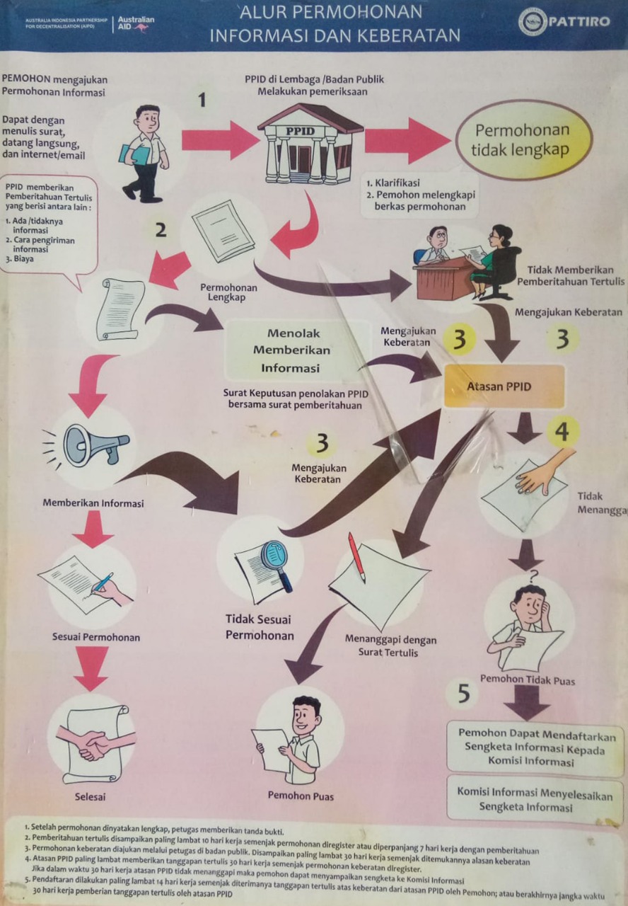 Berisi Standar Operasional Prosedur dalam pelayanan informasi publik, termasuk tahapan penerimaan, pencatatan, dan penyampaian informasi.
