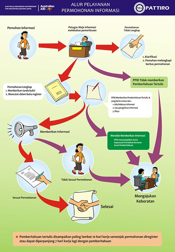 Berisi Standar Operasional Prosedur dalam pelayanan informasi publik, termasuk tahapan penerimaan, pencatatan, dan penyampaian informasi.